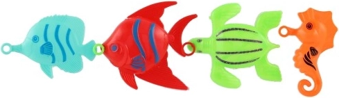 Το σετ περιλαμβάνει 4 έντονα χρωματιστά ψαράκια που διεγείρουν τη φαντασία των παιδιών και τα παρακινούν σε παιχνίδι και διαγωνισμό – ποιος θα τα πιάσει πιο γρήγορα;