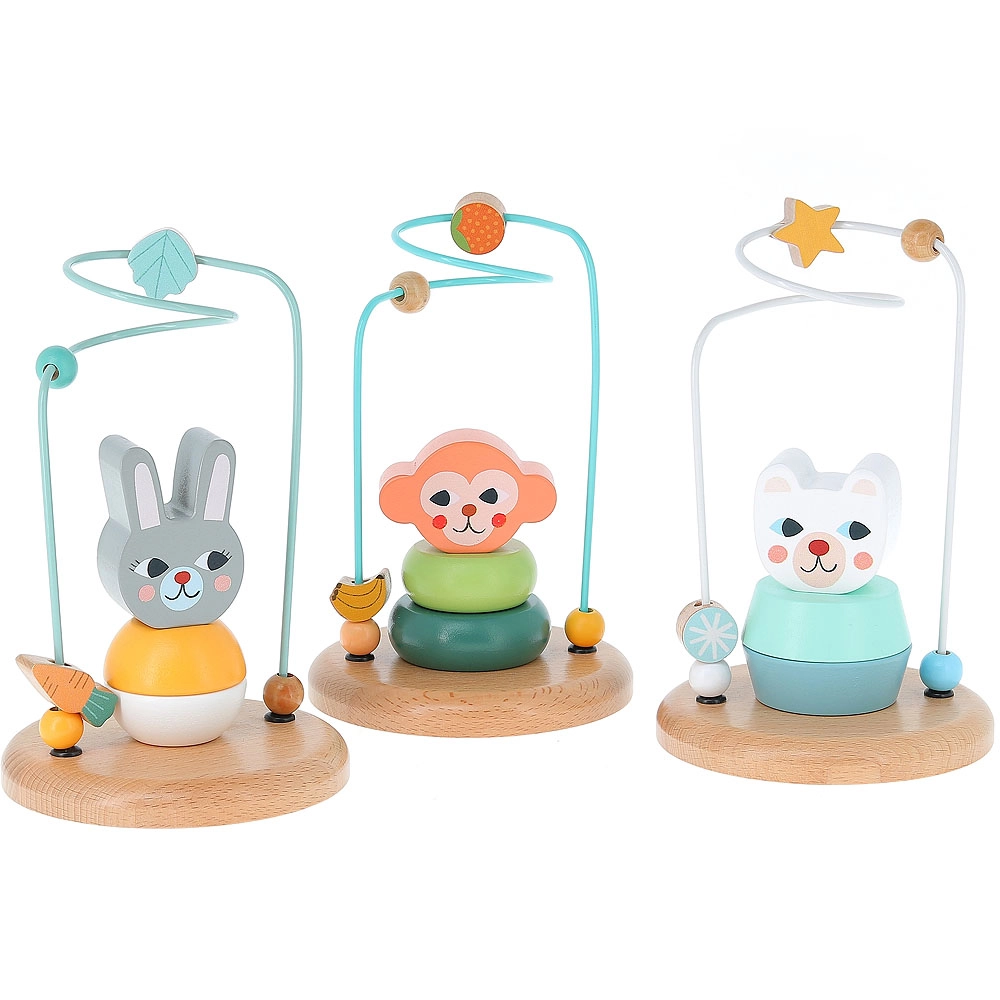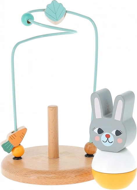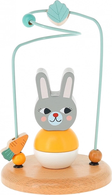 Αυτός ο ξύλινος λαβύρινθος με μεταλλική διαδρομή και φιγούρα κουνελιού προσφέρει μια διασκεδαστική δραστηριότητα, όπου τα παιδιά μετακινούν χάντρες και σχήματα (καροτάκι, φυλλαράκι) κατά μήκος κυματιστής πορείας. Το παιχνίδι υποστηρίζει την ανάπτυξη λεπτής κινητικότητας, τη συγκέντρωση και την υπομονή, ενώ είναι ταυτόχρονα ασφαλές και σταθερό χάρη στη στιβαρή ξύλινη βάση.