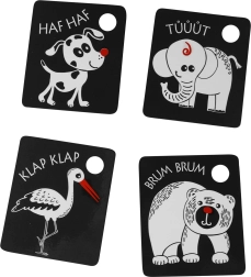 Υποστηρίξτε την πρώιμη ανάπτυξη του μωρού σας με κοντραστ κάρτες που διεγείρουν την όραση και την προσοχή. Το σετ περιλαμβάνει 9 ανθεκτικές κάρτες από τσέχικα υλικά, με άνοιγμα για κρέμασμα και πλαστικό κρίκο για εύκολη σύνδεση. Οι κάρτες αναπτύσσουν τη οπτική διέγερση, τη λεπτή κινητικότητα και τη γνωριμία με τα ζωάκια.