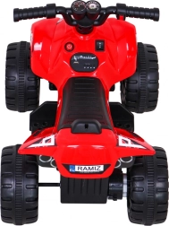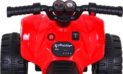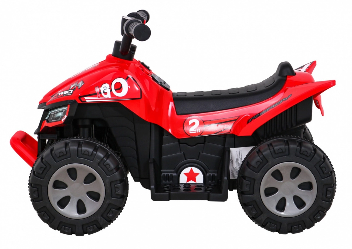 Στυλάτο παιδικό τετράτροχο με μπαταρία που προσφέρει διασκεδαστική οδήγηση στο σπίτι και έξω. Χάρη στο μοτέρ 25 W, την μπαταρία 6 V / 4,5 Ah και το γκάζι στη χειρολαβή, είναι ιδανικό για τις πρώτες οδηγικές εμπειρίες. Σταθεροί πλαστικοί τροχοί, όπισθεν (μπροστά/πίσω) και συμπαγείς διαστάσεις εξασφαλίζουν ασφαλή και άνετη οδήγηση.