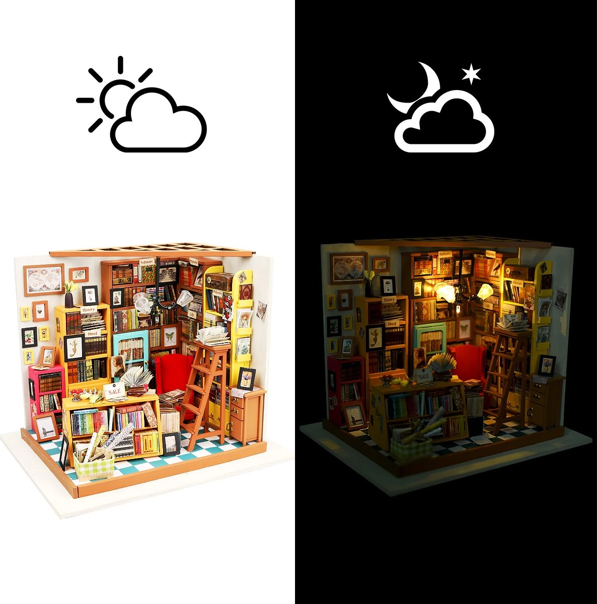 Ανακαλύψτε τη γοητεία μιας μινιατούρας βιβλιοθήκης που με τις λεπτομέρειές της σας βυθίζει στον κόσμο των ιστοριών. Η κατασκευή ROBOTIME είναι ιδανική για όσους απολαμβάνουν δημιουργική χαλάρωση και θέλουν να διακοσμήσουν το σπίτι τους με ένα στιλάτο διακοσμητικό. Ο LED φωτισμός δημιουργεί μια ζεστή και άνετη ατμόσφαιρα, χάρη στην οποία το μοντέλο ζωντανεύει πλήρως ακόμη και μετά το σκοτάδι.