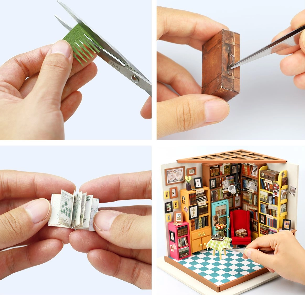 Αγαπάτε το άρωμα των βιβλίων και τα ζεστά, άνετα κρυψώνες; Η μινιατούρα κατασκευής ROBOTIME Βιβλιοθήκη προσφέρει υπέροχα λεπτομερή στοιχεία, LED φωτισμό και χαλαρωτική δημιουργία για πολλές ώρες. Στη συσκευασία θα βρείτε όλα τα απαραίτητα, συμπεριλαμβανομένων κόλλας, χρωμάτων και πινέλου – απλώς ξεκινήστε να δημιουργείτε και ομορφύνετε τον χώρο σας με μια μοναδική διακόσμηση.