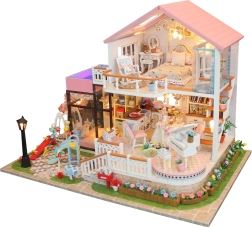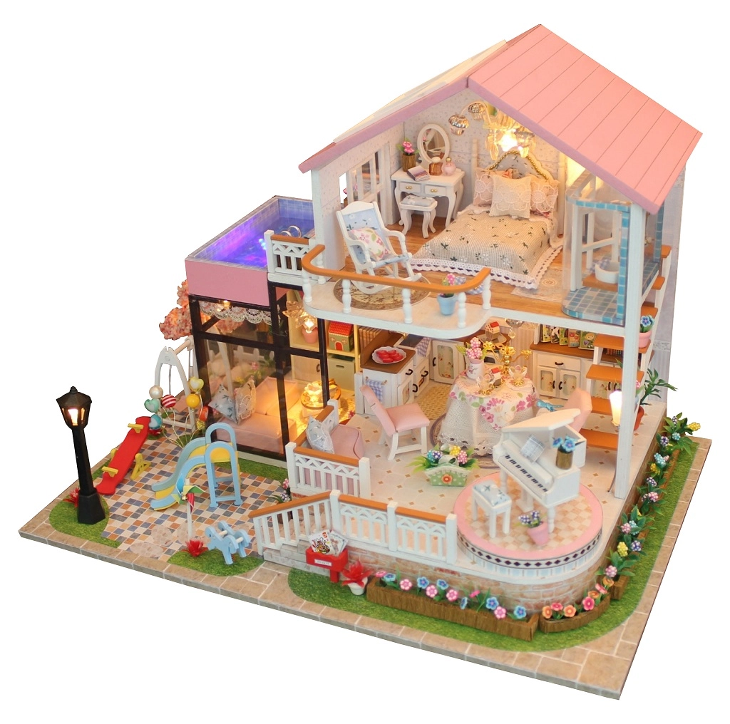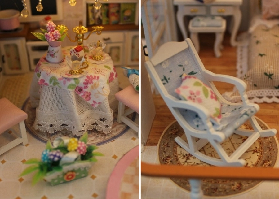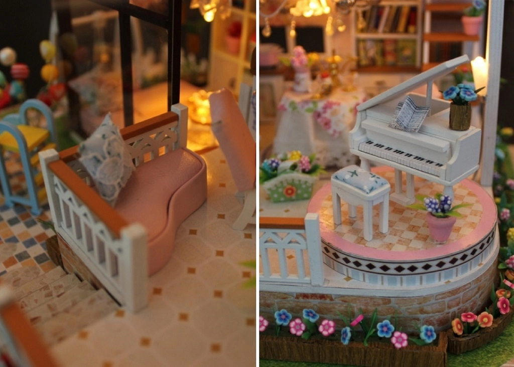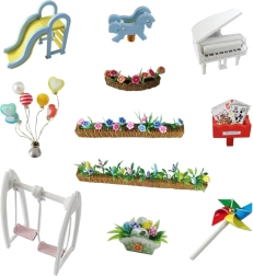 Αυτή η κομψή μινιατούρα σπιτιού προσφέρει πλούσια εξοπλισμένους εσωτερικούς χώρους – υπνοδωμάτιο, καθιστικό και κουζινάκι – και εξωτερική ζώνη με παιδική χαρά. Χάρη στις προσεγμένες λεπτομέρειες, τα έπιπλα και τα αξεσουάρ, δημιουργείτε μια εντυπωσιακή σκηνή για έκθεση αλλά και φανταστικό παιχνίδι. Ο εγκατεστημένος LED φωτισμός προσφέρει ζεστή ατμόσφαιρα τα βράδια (2× AAA δεν περιλαμβάνονται).