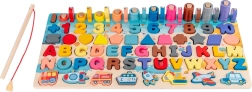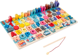 Μέρος του πίνακα είναι ένα μαγνητικό καλάμι, που επιτρέπει στα παιδιά να δοκιμάσουν το παιχνίδι ψαρέματος με τα επιμέρους κομμάτια.