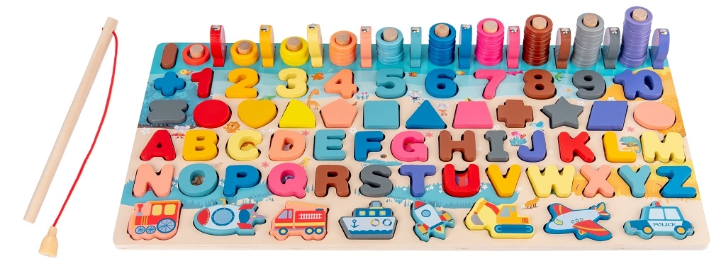Ο ξύλινος πολυλειτουργικός πίνακας προσφέρει ένα εκπαιδευτικό παιχνίδι που συνδυάζει διασκέδαση και μάθηση. Στόχος του παιχνιδιού είναι να μάθει στα παιδιά την αναγνώριση αριθμών, σχημάτων και χρωμάτων μέσω διαδραστικών στοιχείων.