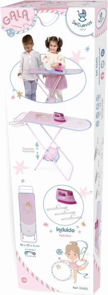 Το πτυσσόμενο σιδερώστρα για κούκλες της συλλογής GALA προσφέρει στα παιδιά αυθεντική εμπειρία φροντίδας των ρουχαλιών. Χάρη στο ρυθμιζόμενο ύψος 55 / 60 / 63 cm «μεγαλώνει» με το παιδί και παραμένει άνετο ακόμα και μετά από χρόνια παιχνιδιού. Ο ροζ-λευκός σχεδιασμός με διακριτικά αθλητικά μοτίβα και συμπληρωματικό μπλε χρώμα δείχνει μοντέρνος και παιχνιδιάρικος.