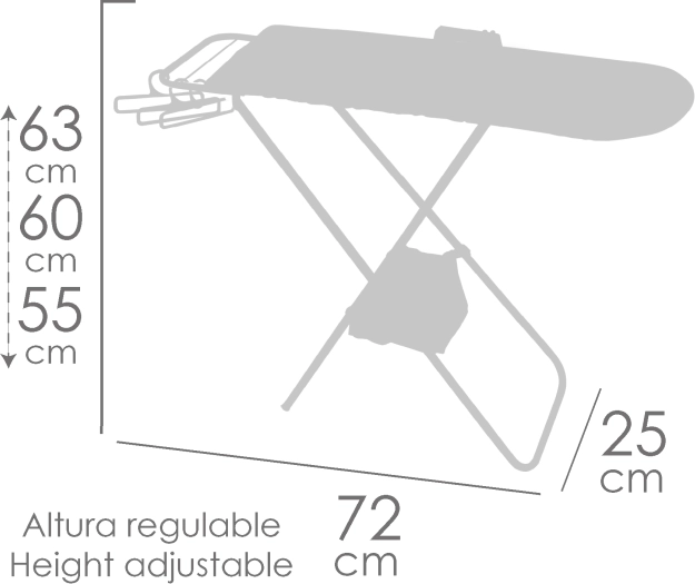 Στη συσκευασία περιλαμβάνονται πρακτικά αξεσουάρ για ολοκληρωμένο παιχνίδι – πλαστικό σίδερο, 3 κρεμάστρες για φορεματάκια και υφασμάτινο καλαθάκι στερεωμένο στο σκελετό. Το σιδερώστρα είναι πτυσσόμενο, μεταφέρεται και αποθηκεύεται εύκολα και, χάρη στα ποιοτικά υλικά (μέταλλο, πλαστικό, ύφασμα), αντέχει στην καθημερινή χρήση.