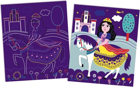 Αυτό το κομψό σετ ξυστών καρτών μετατρέπει κάθε κίνηση με το ξύλινο στιλό σε μια μαγευτική εικόνα με πριγκίπισσες – από τον χορό μέχρι τη ιππασία και τις σκάλες του παλατιού. Τα παιδιά ξύνουν την επάνω στρώση των καρτών και αποκαλύπτουν ζωηρά χρώματα και λαμπερές χρυσές λεπτομέρειες που ζωντανεύουν κυριολεκτικά μπροστά στα μάτια τους.