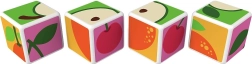Πολύχρωμες εικονογραφήσεις μήλου, κερασιών, μπανάνας, σταφυλιών και πορτοκαλιού ενισχύουν την αναγνώριση χρωμάτων και σχημάτων και διευρύνουν το λεξιλόγιο μέσα από το παιχνίδι.