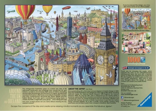Το παζλ RAVENSBURGER «Γύρω από το Ηνωμένο Βασίλειο και την Ιρλανδία» προσφέρει λεπτομερή απεικόνιση χάρτη των Βρετανικών Νησιών. Χάρη στην άριστη κατασκευή, θα απολαύσετε ομαλή σύνδεση κομματιών, αντιθαμβωτική επιφάνεια και ζωντανά, πιστά χρώματα που κάνουν τη συναρμολόγηση πραγματική εμπειρία.