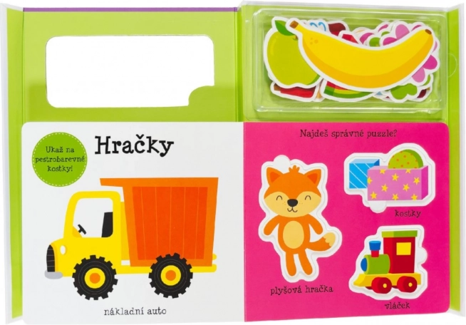 Αυτή η κασετίνα είναι τέλεια επιλογή για μικρά παιδιά που μαθαίνουν νέες λέξεις και βελτιώνουν τη λεπτή κινητικότητα. Χαρούμενα εικονογραφημένο βιβλίο δείχνει στα παιδιά τον κόσμο των βασικών λέξεων, των χρωμάτων, των φρούτων και των ζώων. Επιπλέον: