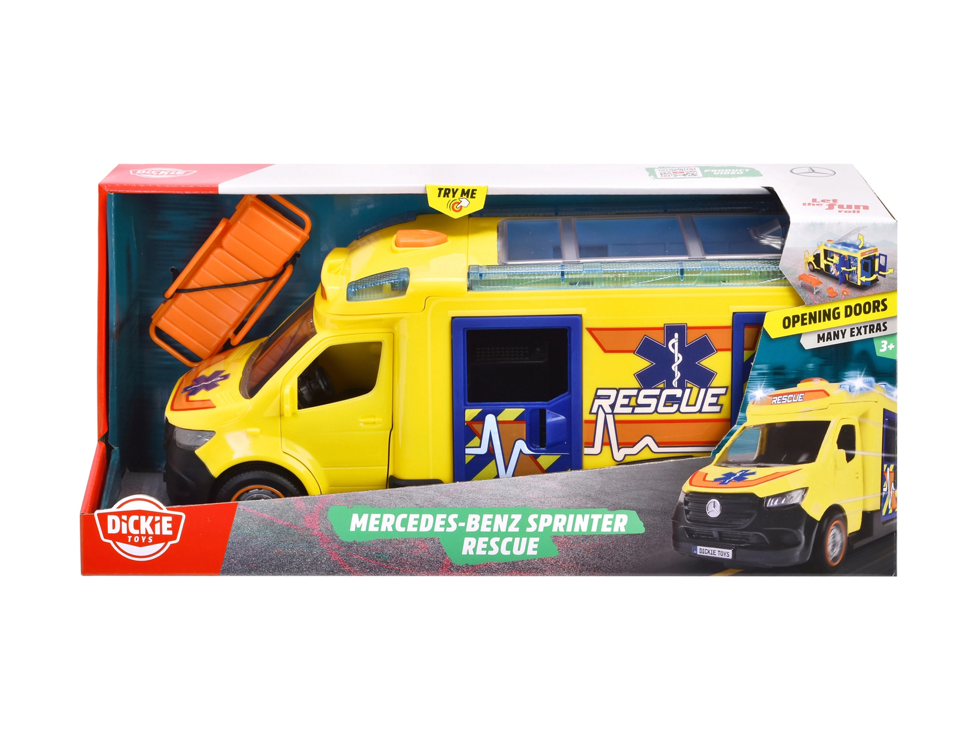 Το σετ περιλαμβάνει φορείο, φαρμακείο πρώτων βοηθειών και σακίδιο, επιτρέποντας στα παιδιά να υποδύονται τους διασώστες. Το όχημα έχει μήκος 34,5 cm και είναι επίσημα αδειοδοτημένο από τη Mercedes-Benz.