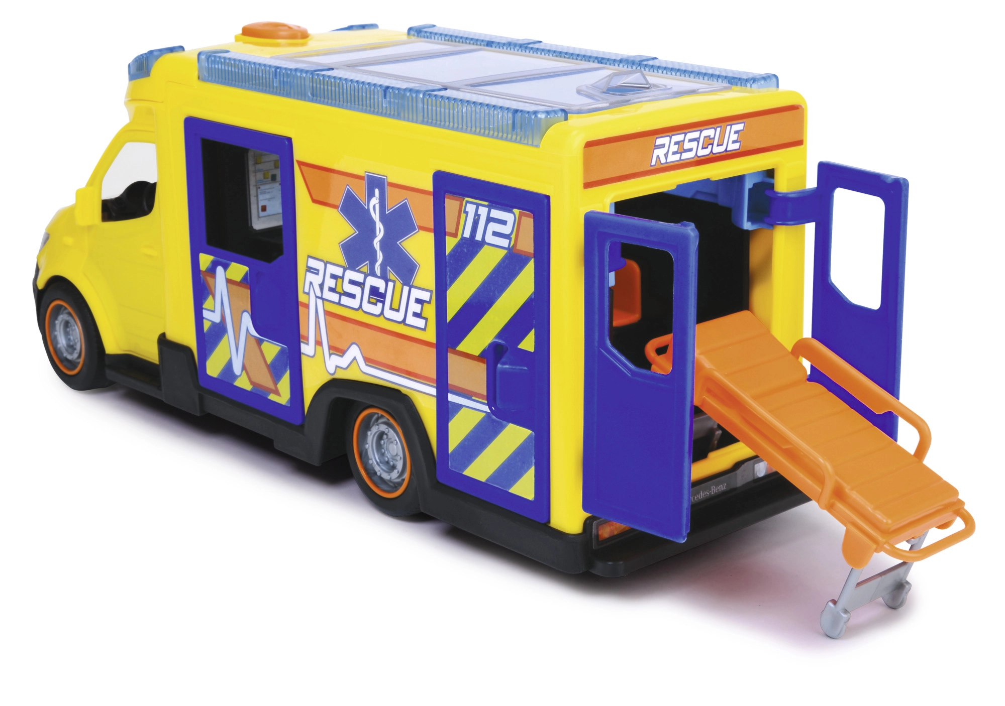 Επίσημα αδειοδοτημένο ασθενοφόρο Mercedes-Benz με μεγάλο χώρο παιχνιδιού και μήκος 34,5 cm.