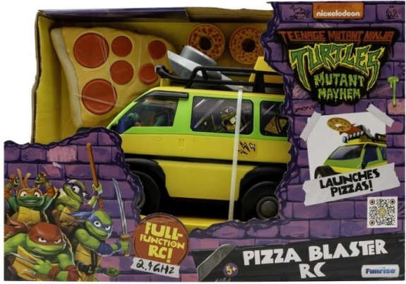 Το RC αυτοκίνητο Pizza Blaster είναι εξοπλισμένο με τεχνολογία 2,4 GHz για εύκολη και ομαλή οδήγηση. Με αυτό το όχημα μπορείτε να εκτοξεύετε έως και 6 αφρώδεις πίτσες στους αντιπάλους σας και να απολαύσετε μια δυναμική μάχη όπως οι αληθινές Χελώνες Ninja! Το αστείο τηλεχειριστήριο σε σχήμα κομματιού πίτσας προσθέτει έξτρα δόση διασκέδασης και ευκολίας χειρισμού.