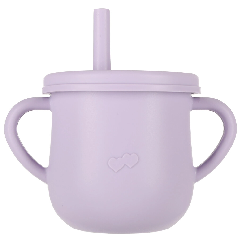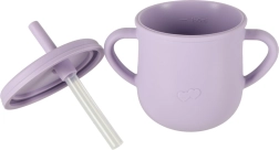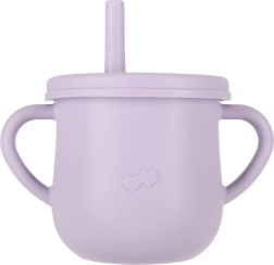 Εκπαιδευτικό ποτηράκι με δύο χερούλια, δύο καπάκια και καλαμάκι βοηθά τα παιδιά να μάθουν να πίνουν μόνα τους· οι εσωτερικές ενδείξεις διευκολύνουν τη δοσομέτρηση.