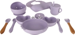 - Πλήρης εξοπλισμός: πιάτο, μπολ, ποτηράκι με 2 καπάκια και καλαμάκι, 2× κουταλάκι, 2× πιρουνάκι, σαλιάρα