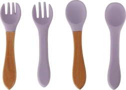 - Ευχάριστα υλικά: απαλή σιλικόνη + ξύλινες λαβές στα μαχαιροπίρουνα