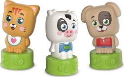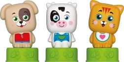 Τρεις φιγούρες – γατούλα, αγελαδίτσα και σκυλάκι – παρακινούν τα παιδιά σε δημιουργικό παιχνίδι, αναπτύσσουν τη φαντασία και υποστηρίζουν τις πρώτες λογικές συνδέσεις.