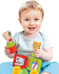 Αυτό το δημιουργικό σετ της CLEMENTONI ενισχύει τη φυσική περιέργεια των παιδιών. Τα μαλακά και ελαστικά τουβλάκια πιέζονται εύκολα, στοιβάζονται με ασφάλεια και προσκαλούν στο άγγιγμα χάρη στις διαφορετικές επιφανειακές υφές. Το εικονογραφημένο βιβλιαράκι με ζωάκια αναπτύσσει την πρώιμη αντίληψη, τη γλώσσα και την αλληλεπίδραση γονέα–παιδιού.
