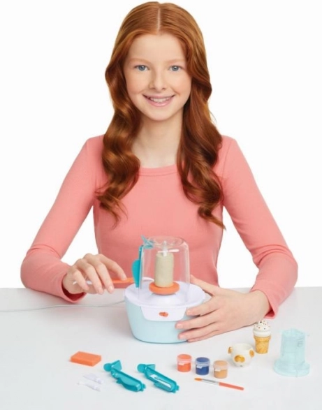 Οι διαδραστικές λειτουργίες επιτρέπουν στα παιδιά να περιστρέφουν τον πηλό και με ενθουσιασμό να παρακολουθούν πώς διαμορφώνονται οι δημιουργίες τους. Το παιχνίδι είναι ιδανικό για δημιουργικό παιχνίδι.
