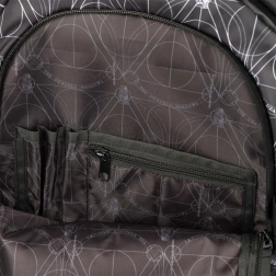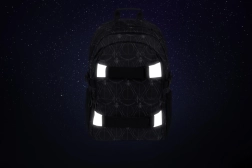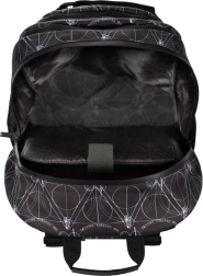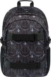 Δύο στιβαροί μπροστινοί ιμάντες επιτρέπουν την ασφαλή στερέωση του skateboard. Μοντέρνος ασπρόμαυρος σχεδιασμός με θέμα τα κειμήλια του θανάτου και ανακλαστικά στοιχεία εξασφαλίζουν ότι θα φαίνεστε και θα δείχνετε υπέροχα.