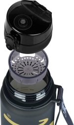 Πρακτικό και ανθεκτικό μπουκάλι από tritan χωρητικότητας 500 ml, ιδανικό για το σχολείο, τη δουλειά και τον αθλητισμό. Διαθέτει κλειδωτό flip-top καπάκι κατά της διαρροής, σουρωτήρι για φρούτα ή τσάι και άνετο λουράκι μεταφοράς. Το ασφαλές υλικό BPA free δεν μυρίζει πλαστικό και είναι κατάλληλο και για ζεστά ροφήματα.