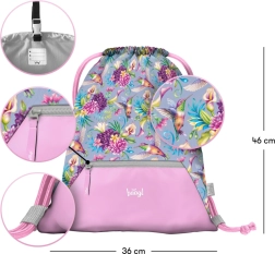 Πρακτικό αθλητικό σακουλάκι Baagl με σχέδιο κολιμπρί, ιδανικό για παντόφλες, παπούτσια και δραστηριότητες ελεύθερου χρόνου. Διαθέτει ανθεκτικό, πλενόμενο υλικό, πρακτική μπροστινή τσέπη με φερμουάρ και ανθεκτικά κορδόνια για εύκολη μεταφορά στην πλάτη. Χάρη στην καραμπίνα το προσαρτάτε εύκολα στη σχολική τσάντα.