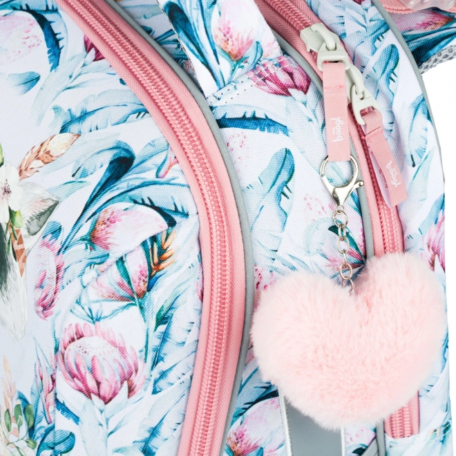 Η στιβαρή κατασκευή της τσάντας προστατεύει πλήρως το περιεχόμενο και προσφέρει αίσθηση σταθερότητας. Με μια σειρά από ανακλαστικά στοιχεία, το παιδί παραμένει ορατό στον δρόμο προς το σχολείο. Η τσάντα είναι επίσης εξοπλισμένη με στιλάτο, χνουδωτό μπρελόκ που προσθέτει τάση.