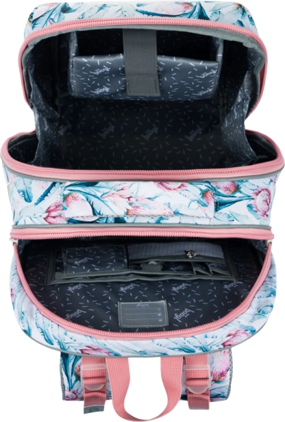 Η τσάντα με ενισχυμένο σώμα λειτουργεί σαν προστατευτικό κέλυφος. Δύο θάλαμοι και εσωτερικός οργανωτής προσφέρουν άφθονο χώρο για όλα τα σχολικά είδη.