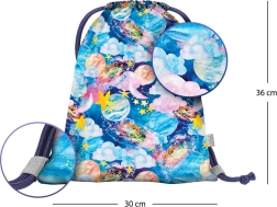 Στυλάτος σάκος με αστέρια και πλανήτες, ιδανικός για παιδικό σταθμό, προπόνηση και εκδρομές. Το υφασμάτινο υλικό είναι ανθεκτικό και εύκολο στη συντήρηση, ώστε να απομακρύνετε εύκολα τις μικρές βρομιές με ένα πέρασμα. Χάρη στο πρακτικό κλείσιμο με κορδόνια τα παιδιά ανοίγουν και κλείνουν τον σάκο μόνα τους με άνεση.