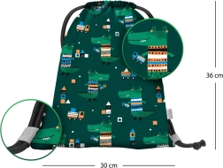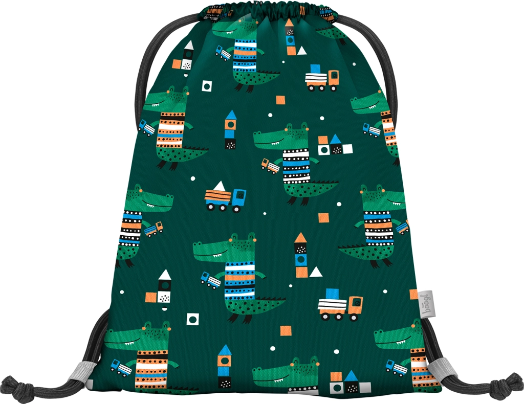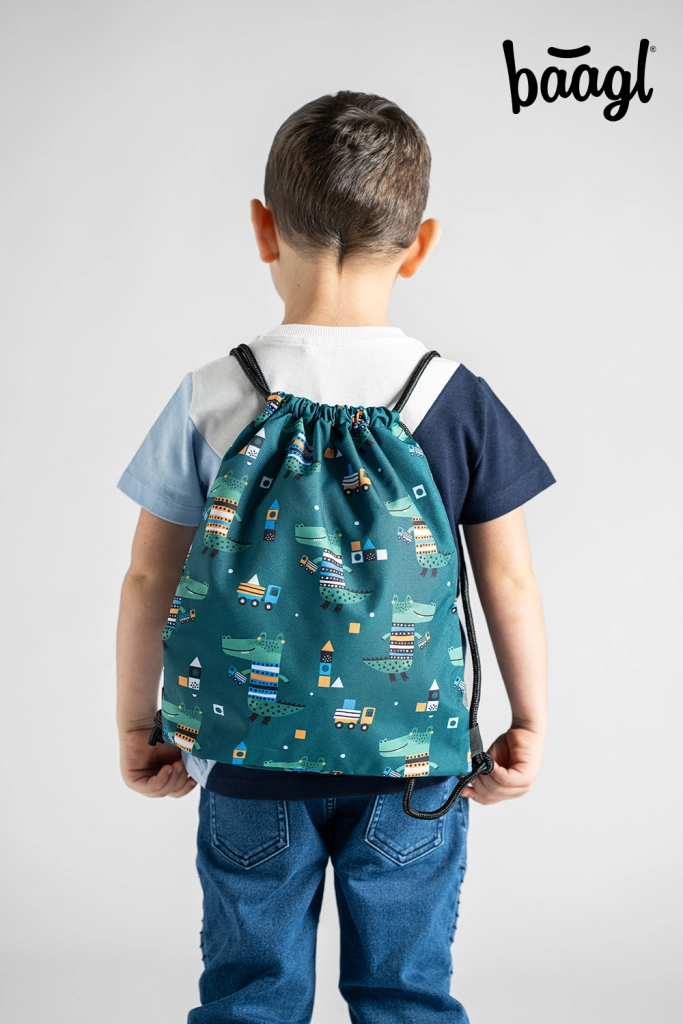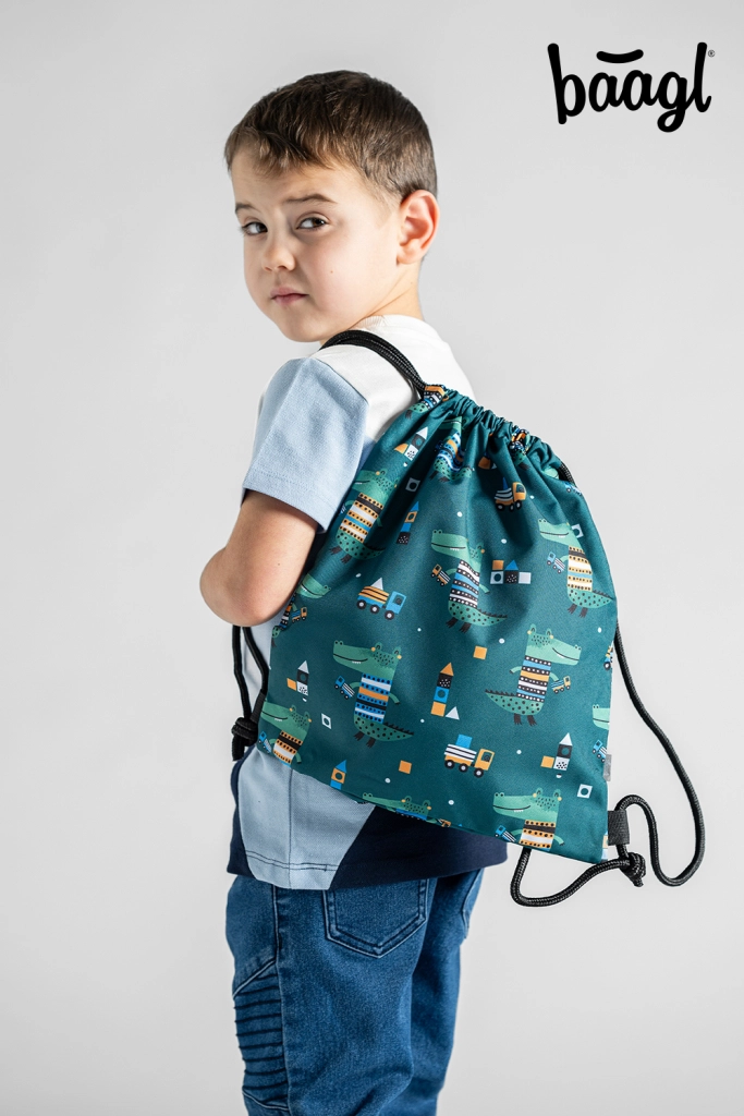Στυλάτη και πρακτική σακούλα BAAGL με παιχνιδιάρικο μοτίβο κροκόδειλου, που προσφέρει ανθεκτική κατασκευή για καθημερινή χρήση. Η πλενόμενη επιφάνεια διευκολύνει τη συντήρηση, ενώ τα γερά κορδόνια εξασφαλίζουν ασφαλές κλείσιμο και άνετη μεταφορά στην πλάτη.