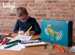 Πρακτική και ανθεκτική βαλίτσα για μαθητές και δημιουργικά παιδιά. Χάρη στα έξυπνα κουμπώματα, την ξεδιπλώνετε εύκολα, την αποθηκεύετε «ελαφριά» και την ξαναδιπλώνετε όποτε θέλετε. Η επικαλυμμένη επιφάνεια με μεταλλωμένες γωνίες αντέχει στην καθημερινή χρήση και το ελκυστικό μοτίβο T‑REX δίνει στυλ σε κάθε σχολικό εξοπλισμό.