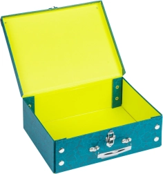 Ο στιβαρός επικαλυμμένος χαρτί, οι μεταλλωμένες γωνίες και η μεταλλική πόρπη προστατεύουν τη βαλίτσα από κρούσεις και καθημερινή φθορά.