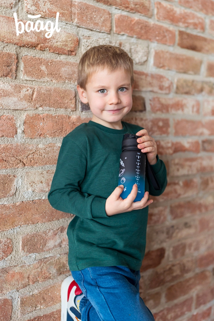 Αυτό το μπουκάλι tritan BAAGL χωρητικότητας 350 ml με εντυπωσιακό gradient από μαύρο σε μπλε είναι αξιόπιστος σύντροφος για την καθημερινή ενυδάτωση. Το κλειδωτό καπάκι αποτρέπει τις ανεπιθύμητες διαρροές και επιτρέπει γρήγορο, διαισθητικό άνοιγμα με το ένα χέρι. Χάρη στο ενσωματωμένο σουρωτήρι απολαμβάνετε νερό με φρούτα ή χύμα τσάγια – το υλικό είναι κατάλληλο και για ζεστά ροφήματα.