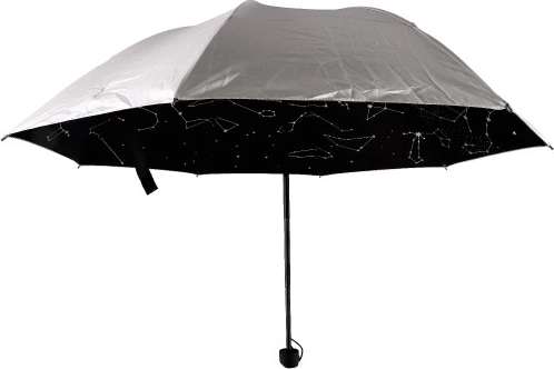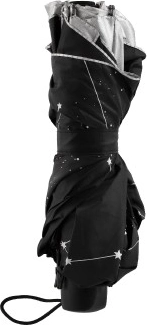 Ανακαλύψτε ένα πρακτικό και κομψό αξεσουάρ για βροχερές μέρες. Αυτή η πτυσσόμενη ομπρέλα ξεχωρίζει με την ασημί επιφάνειά της και τον εσωτερικό ουρανό γεμάτο αστερισμούς, που δίνει στις διαδρομές σας ιδιαίτερο στυλ. Η ελαφριά κατασκευή και ο άνετος ιμάντας καρπού διευκολύνουν τη μεταφορά και την αποθήκευση.