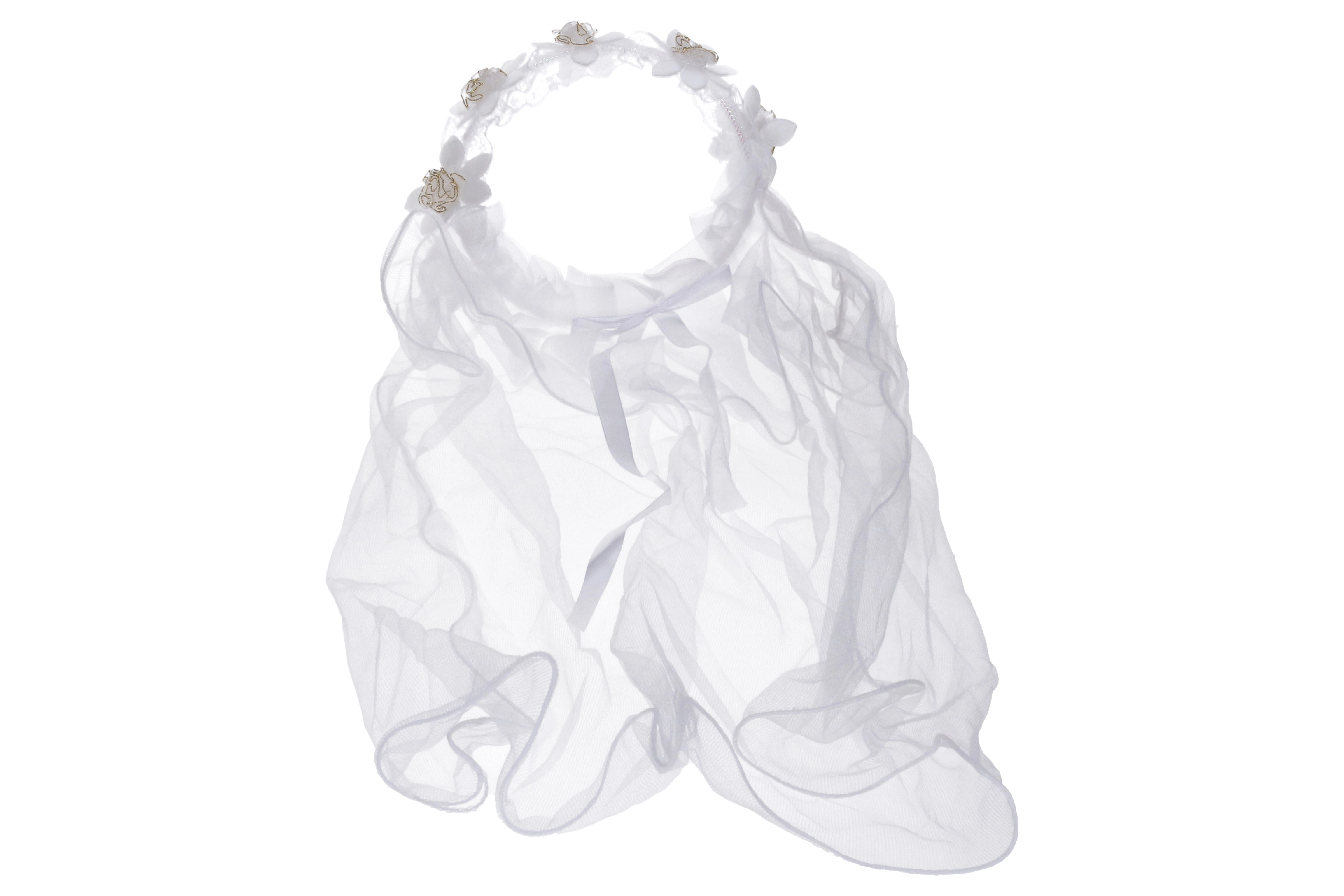 Αυτή η στιλάτη στέκα με πέπλο μεταμορφώνει σε χρόνο μηδέν μια μικρή πριγκίπισσα, νεράιδα ή νύφη. Το απαλό, ημιδιάφανο τούλι κυματίζει όμορφα και οι λουλουδάτες λεπτομέρειες χαρίζουν στο αξεσουάρ έναν ρομαντικό χαρακτήρα. Χάρη στο ελαφρύ ύφασμα και την ελαστική εφαρμογή, φοριέται άνετα όλη την ημέρα.