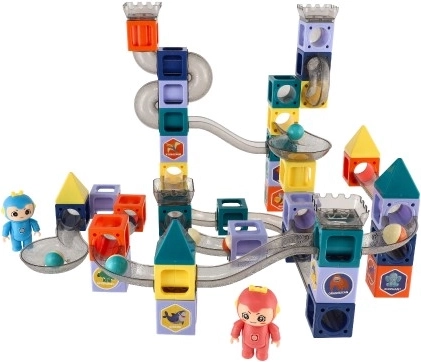 Ποικιλία από μπλοκ, ράμπες και αξεσουάρ επιτρέπουν τη δημιουργία συνεχώς νέων διαδρομών για μπίλιες. Τα παιδιά ανακαλύπτουν τις αρχές της βαρύτητας και της ταχύτητας με διασκεδαστικό τρόπο.
