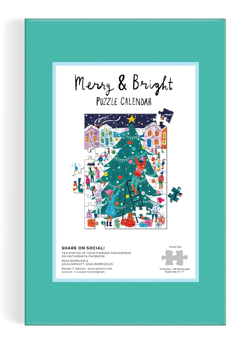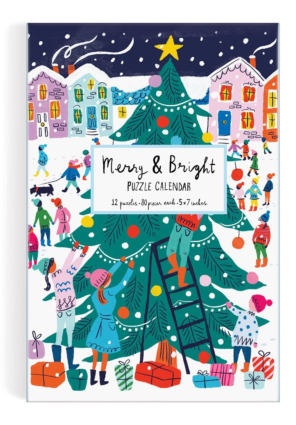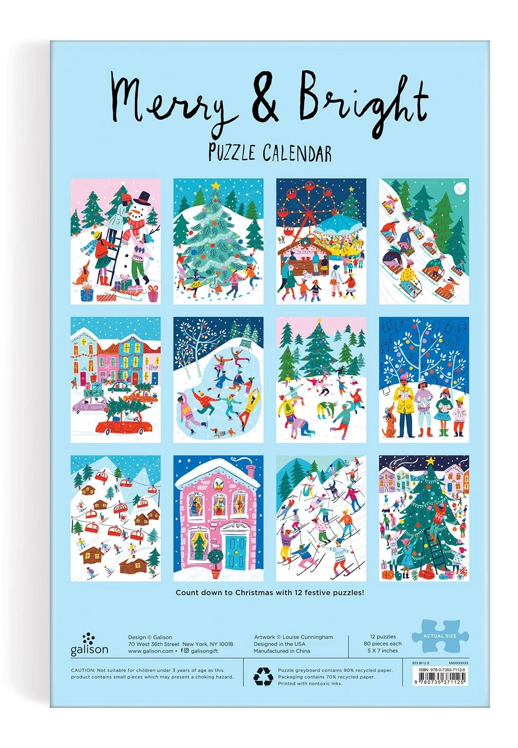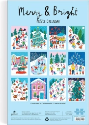 Σε 12 διαφορετικά παζλ περιμένουν τους πελάτες εορταστικές σκηνές που θα μαγέψουν κάθε οικογένεια. Το Χριστουγεννιάτικο ημερολόγιο Advent Merry & Bright Puzzle είναι τέλειο ως δώρο ή για χειμερινή διασκέδαση. Κάθε παζλ έχει διαστάσεις 12,7 x 17,8 cm και είναι κατάλληλο για παιδιά από 6 ετών.