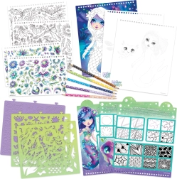 Το σετ περιλαμβάνει πλούσιο υλικό για ευφάνταστες δημιουργίες: αυτοκόλλητα, στένσιλ, υφές και ποιοτικές διπλές ξυλομπογιές. Τα παραδείγματα τεχνικών και η βασική θεωρία χρωμάτων βοηθούν στη βελτίωση των σχεδιαστικών δεξιοτήτων και ενισχύουν την αυτοέκφραση.