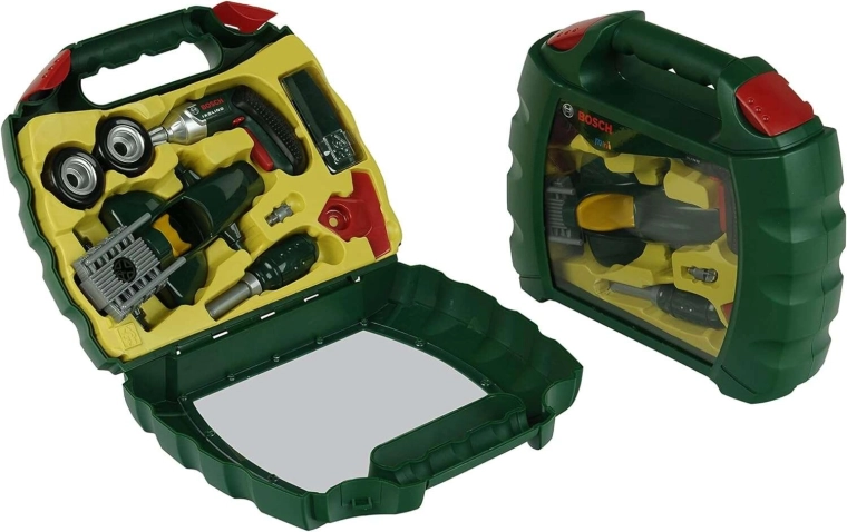 - Βαλιτσάκι με οργανωτή, παιδικό ασύρματο κατσαβίδι BOSCH Ixolino, χειροκίνητο κατσαβίδι, σασί και αμάξωμα αυτοκινήτου, 4 τροχοί, 2 σπόιλερ (κόκκινο και πράσινο), 6 βίδες, αυτοκόλλητα