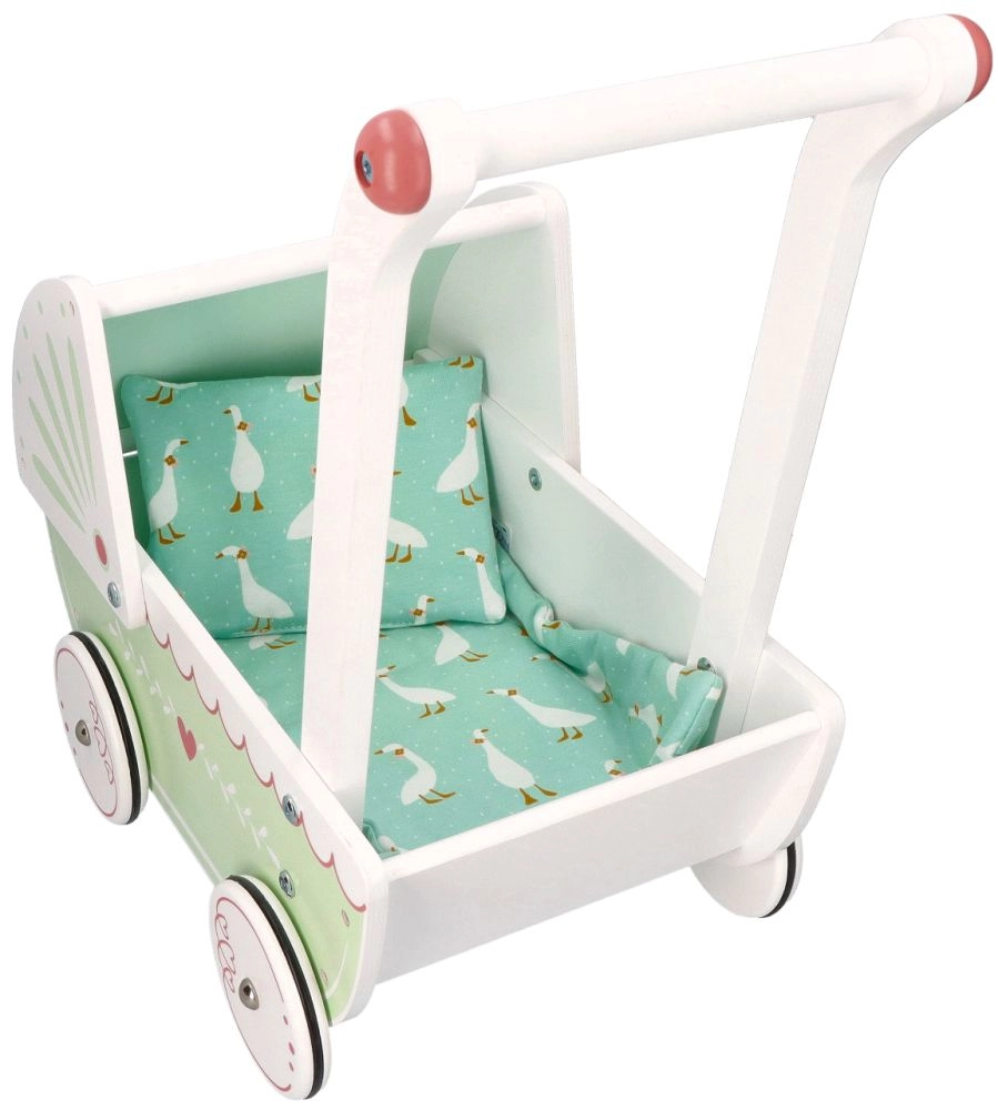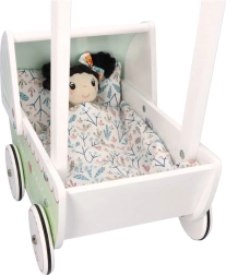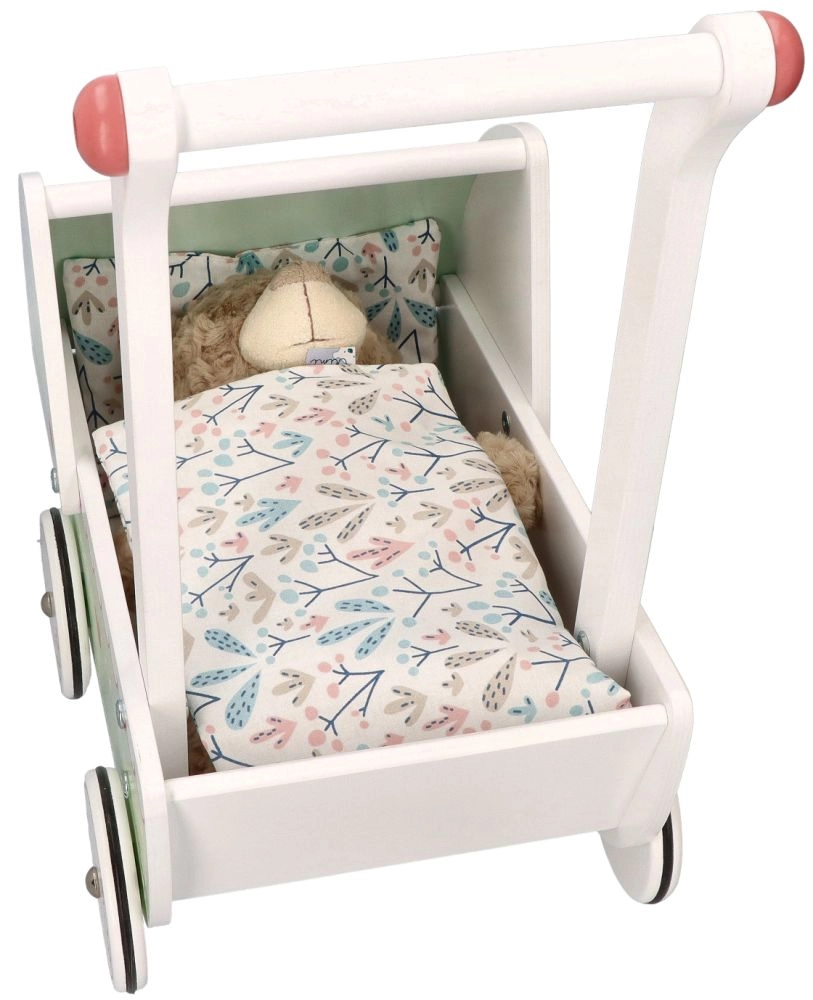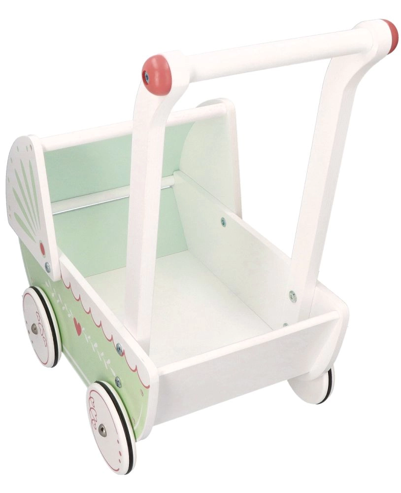 Το καροτσάκι διαθέτει στιβαρή ξύλινη κατασκευή που εξασφαλίζει σταθερότητα και ασφάλεια κατά το παιχνίδι. Ιδανικό για μικρούς αρχάριους περπατητές.