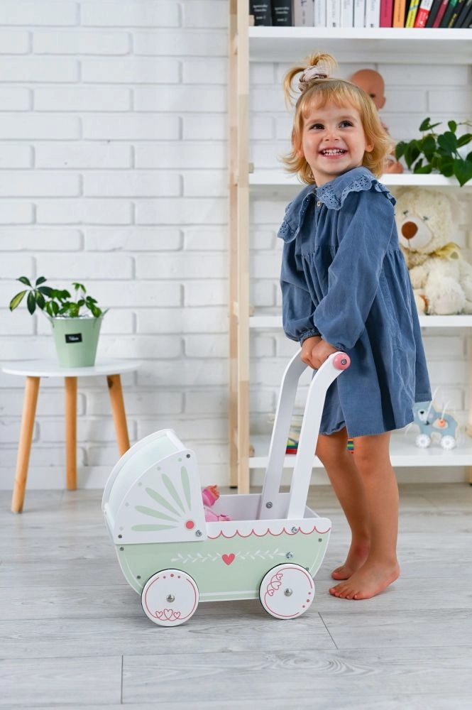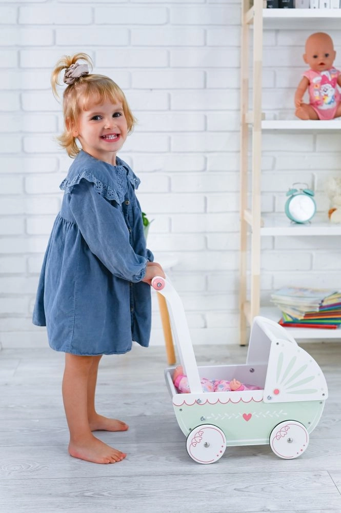 Αυτό το ξύλινο καροτσάκι για κούκλες είναι το ιδανικό παιχνίδι για παιδιά που αγαπούν το παιχνίδι ρόλων και τη φροντίδα των κουκλών τους. Κατασκευασμένο από ποιοτικό ξύλο με όμορφο σχεδιασμό, προσφέρει ασφαλές και διασκεδαστικό παιχνίδι.