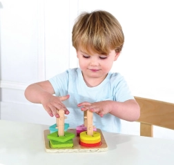 Με αυτό το απλό παιχνίδι τα παιδιά μπορούν να εξασκήσουν την επιδεξιότητα και την υπομονή τους, ενώ ταυτόχρονα μαθαίνουν να αναγνωρίζουν σχήματα και χρώματα καθώς και τις βασικές αρχές της μέτρησης. Το παιχνίδι είναι κατασκευασμένο από ποιοτικό ξύλο FSC® και είναι ιδανικό για την ανάπτυξη δεξιοτήτων των μικρότερων παιδιών.