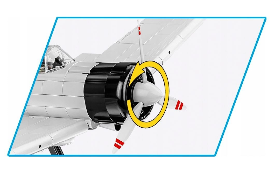 Απολαύστε αυθεντικά στοιχεία, όπως ανοιγόμενη καλύπτρα με θέση για τον πιλότο, κινούμενη έλικα και ailerons, ανασυρόμενο σύστημα προσγείωσης με ελαστικά λάστιχα και πινακίδα ονόματος του αεροσκάφους. Περιλαμβάνονται επίσης σαφείς οδηγίες για εύκολη και ομαλή συναρμολόγηση και βάση παρουσίασης για δυναμική έκθεση.