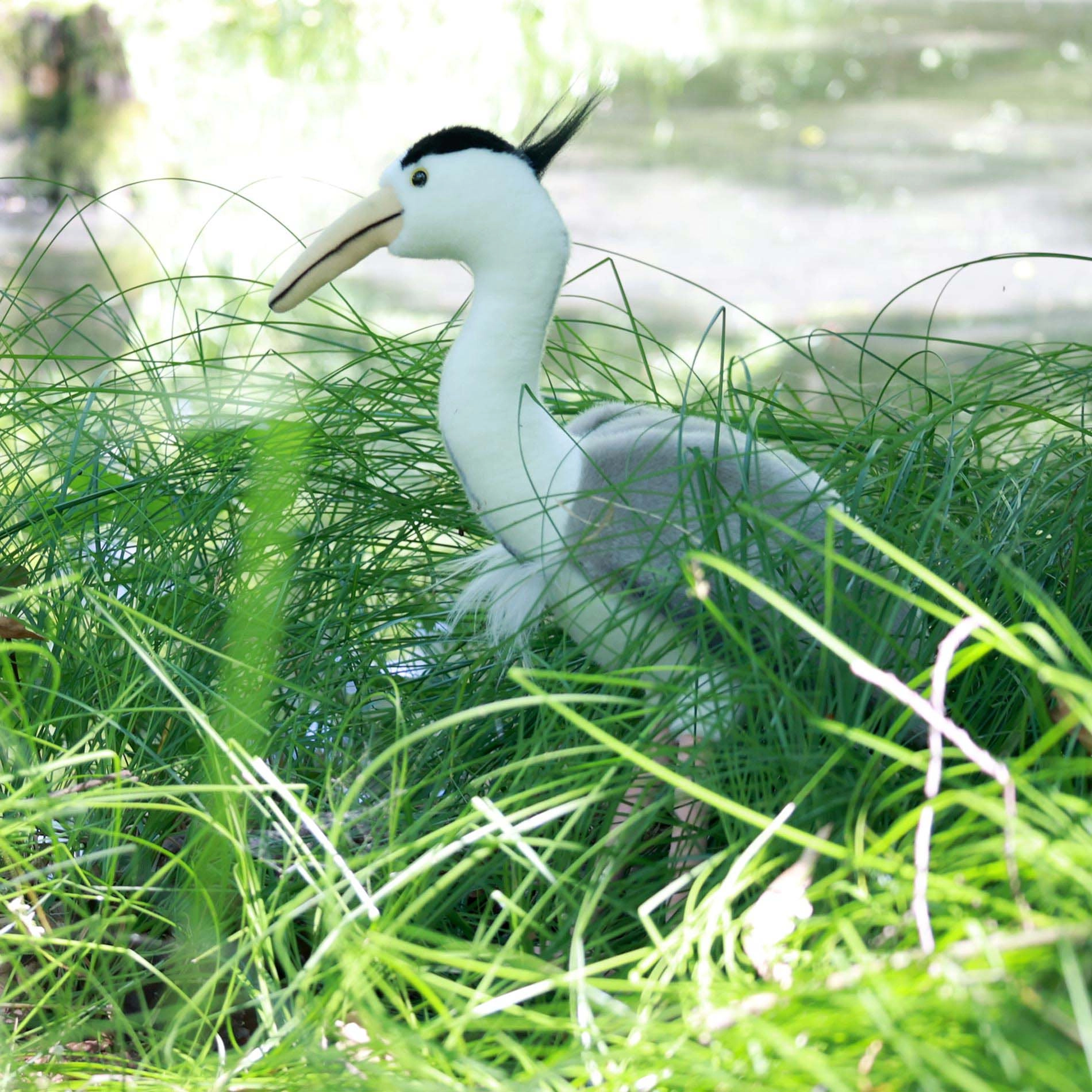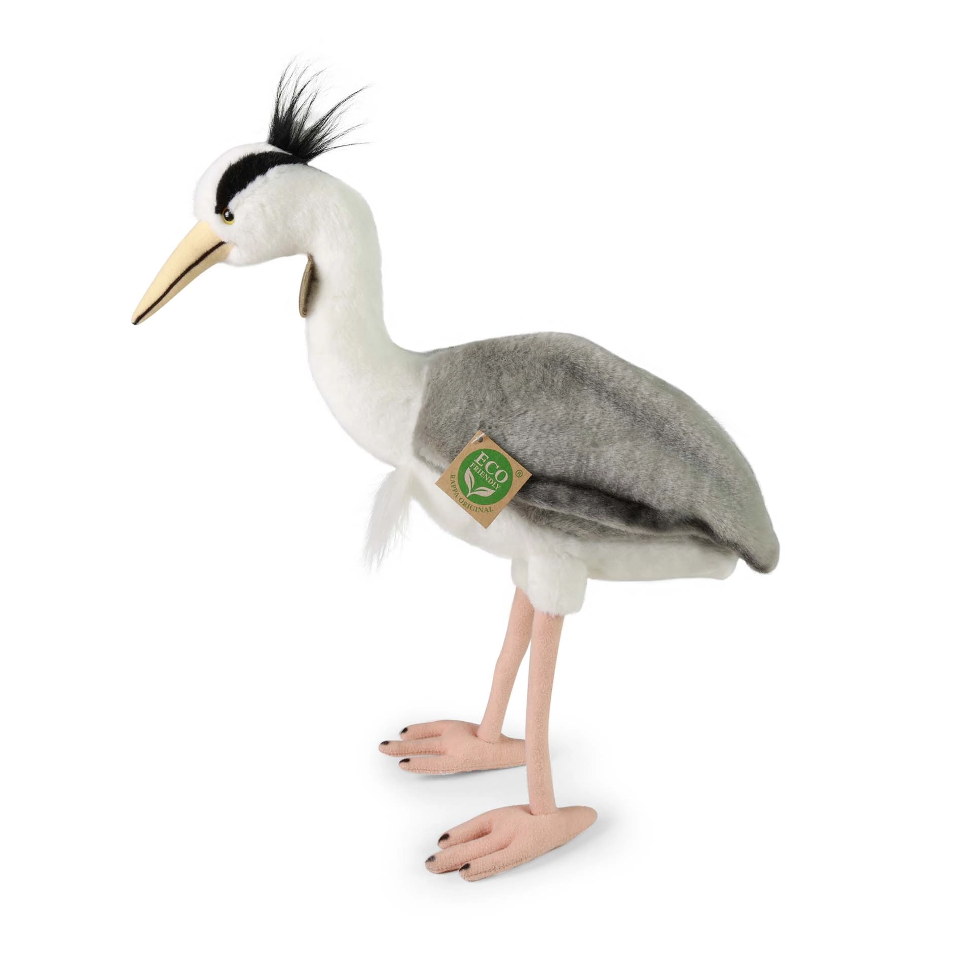 Χαριτωμένος λούτρινος ερωδιός μεγέθους 35 cm, κατασκευασμένος από υψίστης ποιότητας λούτρινο με οικολογικό γέμισμα από ανακυκλωμένα μπουκάλια PET. Εντυπωσιάζει με τον ρεαλιστικό σχεδιασμό, την απαλή υφή στην αφή και είναι κατάλληλος από τη γέννηση.