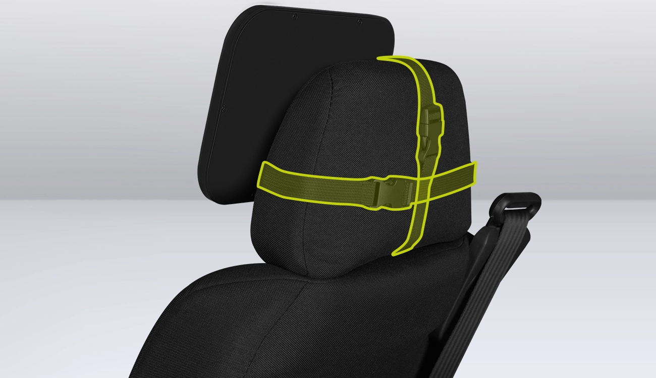 Η εγκατάσταση του καθρέφτη είναι απλή χάρη στους ρυθμιζόμενους ιμάντες και την πόρπη, που επιτρέπουν τη στερέωσή του στο προσκέφαλο σε κάθε όχημα. Με την άρθρωση 360 μοιρών, ο καθρέφτης μπορεί να ρυθμιστεί σε οποιαδήποτε θέση και γωνία.