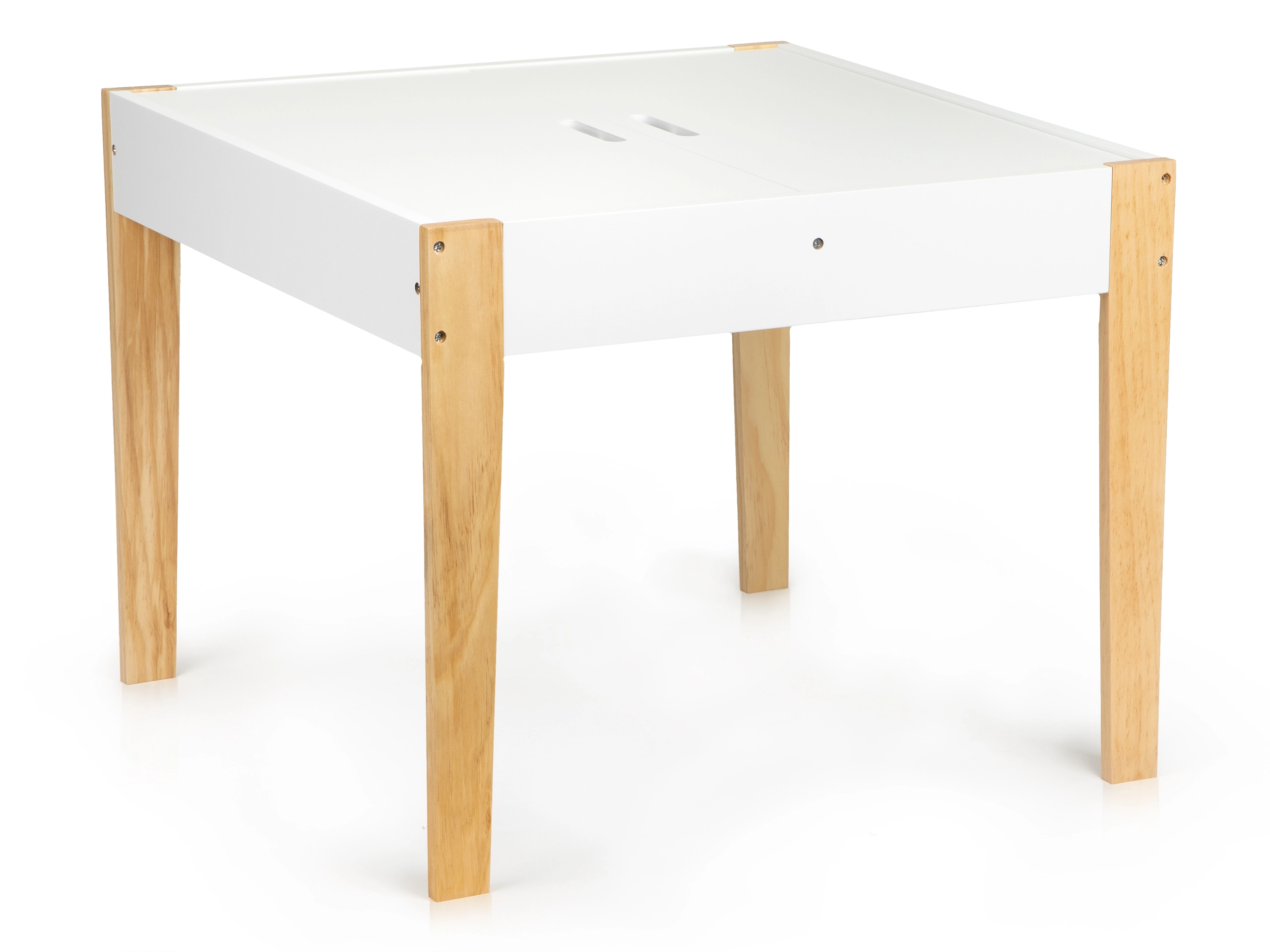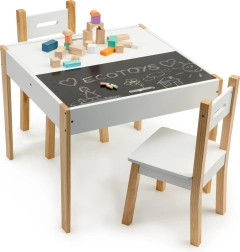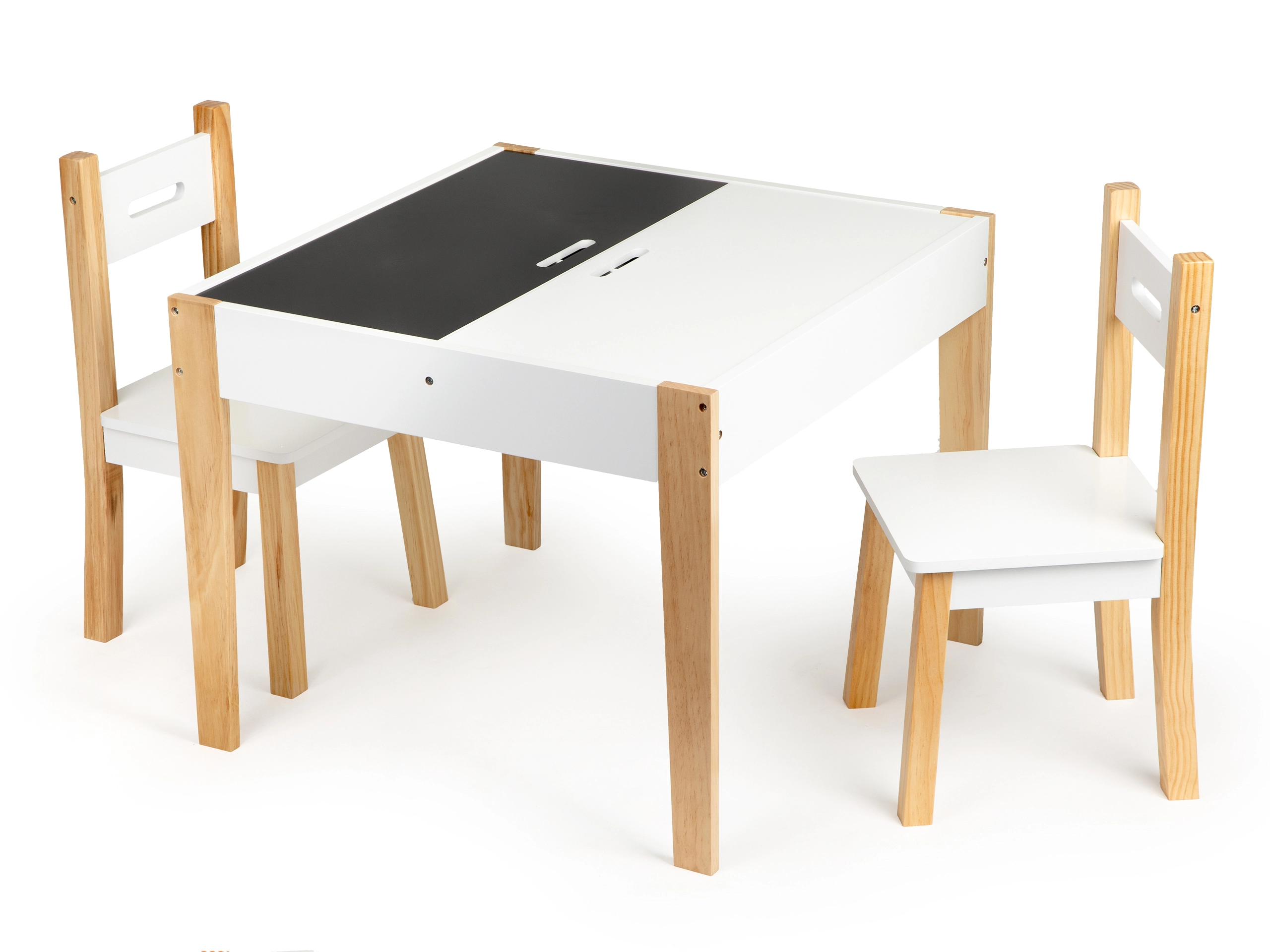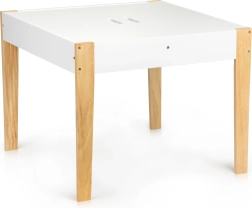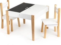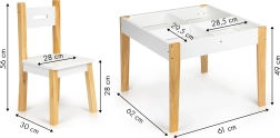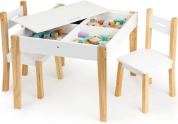 Μετά το παιχνίδι, όλα τα παιχνίδια μπορούν να τακτοποιηθούν εύκολα κάτω από την αφαιρούμενη επιφάνεια του τραπεζιού. Το σετ περιλαμβάνει δύο άνετες καρέκλες με πόδια από πεύκο.