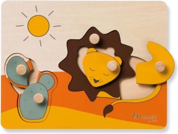 Το ξύλινο παζλ Hauck Lion έχει σχεδιαστεί για ασφαλή και χαρούμενη πρώτη επαφή με τα παζλ. Τα πολύχρωμα κομμάτια με ζωάκια και ήλιο διαθέτουν πρακτικές λαβές που διευκολύνουν τον χειρισμό, ενισχύουν τη σύλληψη και μαθαίνουν στα παιδιά να τοποθετούν σωστά τα σχήματα στις θέσεις τους.