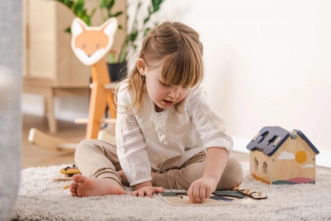 Κατά την τοποθέτηση των κομματιών, τα παιδιά εξασκούν τη μνήμη, τη συγκέντρωση και την επίλυση προβλημάτων. Οι στρογγυλεμένες άκρες προσφέρουν ασφάλεια, ενώ η ποιοτική κατασκευή εγγυάται μεγάλη ανθεκτικότητα του παιχνιδιού.