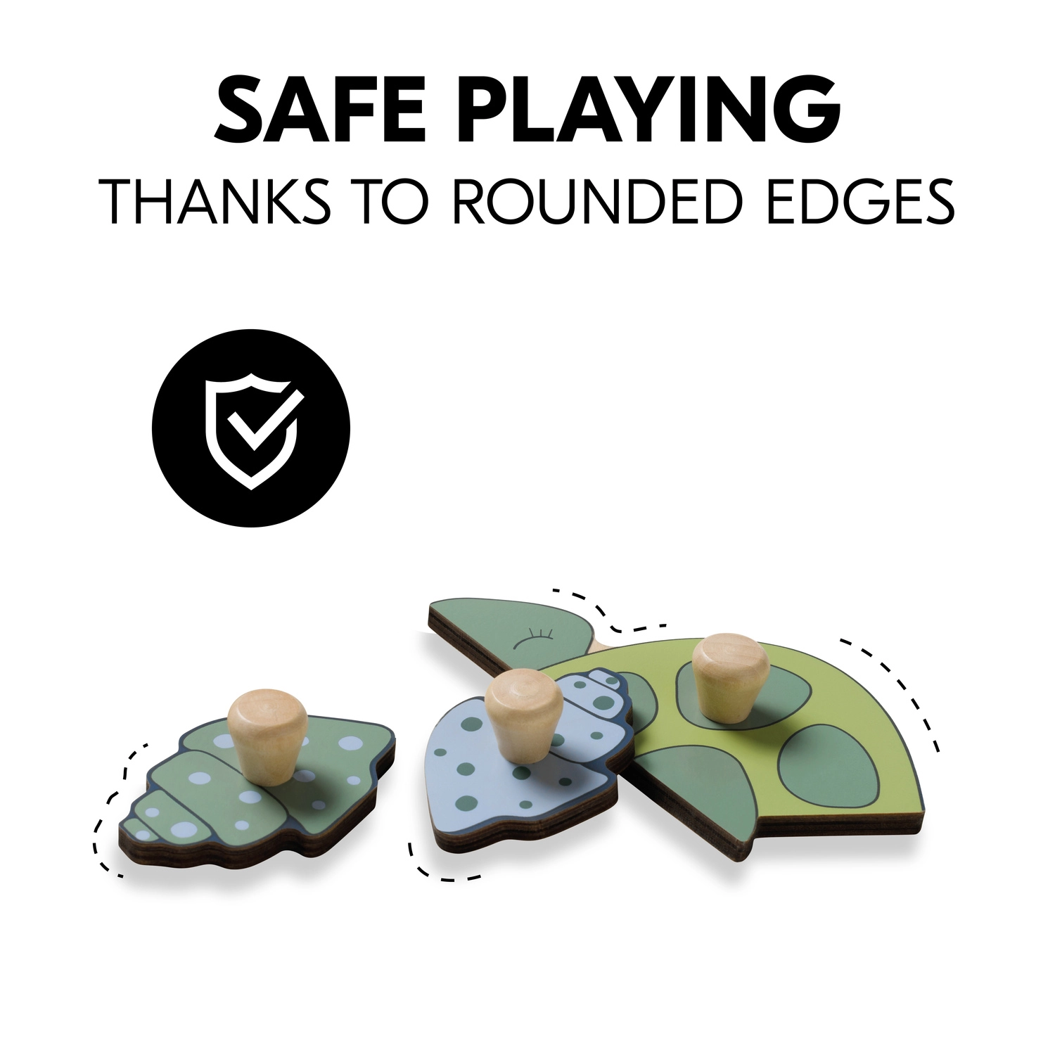 Κάθε κομμάτι έχει ξύλινο κουμπί, που διευκολύνει τα παιδιά να το σηκώνουν και να το τοποθετούν με ακρίβεια στη σωστή θέση – ιδανικό για αρχάριους.